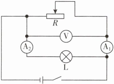 2. (双选)如图所示电路,闭合开关,灯泡 L 正常发光,当滑动变阻器的滑片向右移动时,下列说法正确的是(