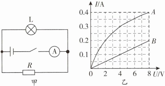 7. 小灯泡 L 和定值电阻 R 接在如图甲所示的电路中,两者的 I - U 关系图像如图乙所示,下列说法中正确的是(