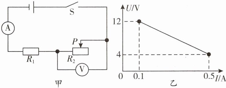 5. (2024·西藏)如图甲所示电路,电源电压保持不变。闭合开关 S,将滑动变阻器的滑片由最右端向左端移动的过程中,电压表与电流表示数的变化关系如图乙所示。下列选项正确的是(
