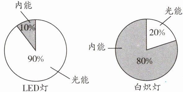 D.电能转化为光能的效率:LED 灯高于白炽灯