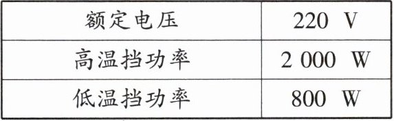 (3)高温挡正常工作2 h,消耗的电能为:$W_{1}=P_{1}t_{1}=2\ kW × 2\ h=4\ kW\cdot\ h$