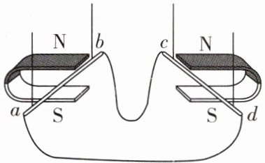 5. (双选) 如图所示,用绝缘细线分别将铜棒 ab、cd 水平悬挂,置于磁场方向竖直的蹄形磁体间,两铜棒间用柔软的细长导线连接成闭合回路。下列说法中正确的是 (