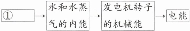 ①____→水和水蒸气的内能→发电机转子的机械能→电能