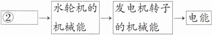 ②____→水轮机的机械能→发电机转子的机械能→电能