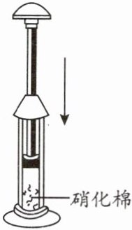 5. 如图所示,在一个配有活塞的厚壁玻璃筒中放入一小团硝化棉,用力将活塞迅速下压,玻璃筒内的空气温度升高,空气的内能