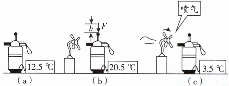 2. 为了探究做功与物体内能变化的关系,某小组同学利用气压式喷雾器、数字式温度计、小叶轮等器材进行实验。