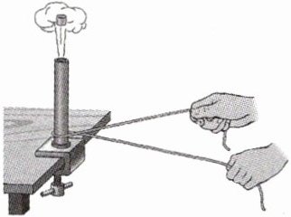 3. 如图所示,把一个底端密闭的薄壁金属管固定在桌上,管里放一些酒精,管口用塞子塞紧,用绳子在管外绕几圈并迅速地来回拉动,不一会儿就看到塞子被弹起。