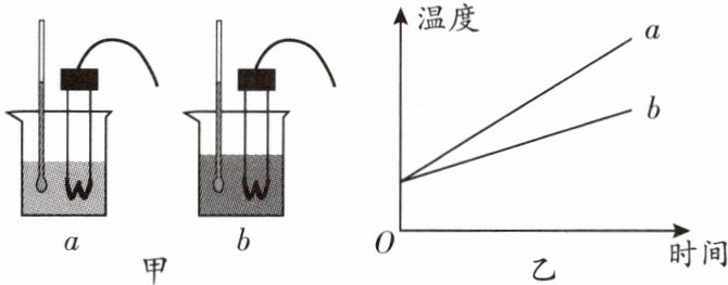 2. 如图甲,利用相同规格的加热器加热等质量的a、b两种液体,得到温度随时间变化的图像如图乙所示,分析可知(