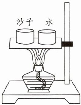 1. 探究“比较不同物质的吸热能力”时,同学们用酒精灯同时开始均匀加热质量和初温都相等的沙子和水,装置如图所示。下列说法正确的是(