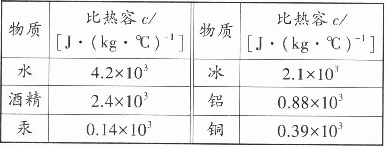 ) |物质|比热容$c/[J·(kg·℃)⁻^1]$|物质|比热容$c/[J·(kg·℃)⁻^1]$|