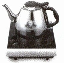 3. 如图所示,是用电磁炉烧水时的情形。已知该电磁炉每分钟能提供$9×10^4 J$的热量,壶的容积为2.5 L。[水的密度为$1.0×10^3 kg/m^3,$水的比热容为$4.2×10^3 J/(kg·℃)] $