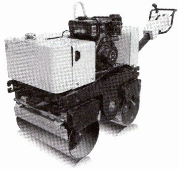 12. 如图所示是一台手扶双轮压路机,质量为 $550kg$,水箱容积为 $15L$。在一次压路作业中,水箱装满水,以 $0.2m/s$ 的速度在水平路面上匀速行驶 $10min$,行驶过程中受到的平均阻力是总重的 $\frac{4}{10}$。求:$ (\rho_{水}= 1.0× 10^{3}kg/m^{3}, g 取 10N/kg,柴油的热值取 4× 10^{7}J/kg) $