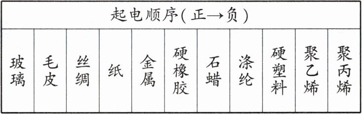 |玻璃 毛皮 丝绸 纸 金属 硬橡胶 石蜡 涤纶 硬塑料 聚乙烯 聚丙烯|