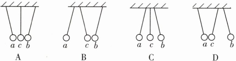 (4)假如自然界存在第三种电荷,且遵循已有的电荷间的作用规律。a、b、c三个轻质小球分别带正电荷、负电荷和第三种电荷,均用细线竖直悬挂,相互靠近,三个小球的最终状态可能为