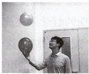 5. 物理课堂上老师做了一个实验,他将两个相同的气球在自己的头发上摩擦后,让一只气球在另一只气球上方“跳舞”,如图所示。对该现象解释正确的是(