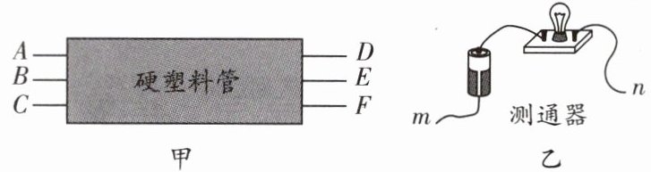 (1)连接 $ A $ 和 $ C $,将测通器的 $ m $ 连接在 $ D $ 上。当 $ n $ 连接 $ F $ 时小灯泡发光,连接 $ E $ 时小灯泡不发光。由此可以确定______
