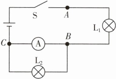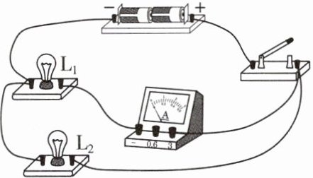 的电流。过一会儿,灯 $L_{1}$ 熄灭,灯 $L_{2}$ 仍发光,则电路故障可能是灯 $L_{1}$ 发生断