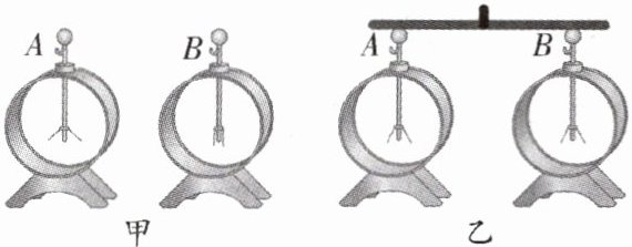 1. 如图甲所示,验电器 A 带正电,B 不带电。用带有绝缘柄的金属棒把验电器 A、B 两金属球连接起来,出现图乙所示的现象。在连接的瞬间,金属棒中自由电子定向移动的方向是由