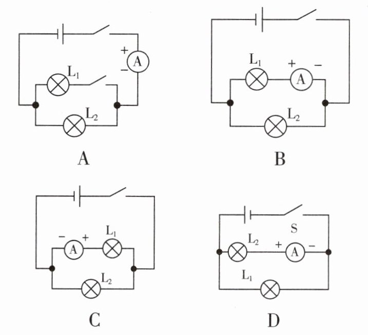 8. 下列选项所示电路中,可以测出灯泡 $L_{1}$ 中电流的是(