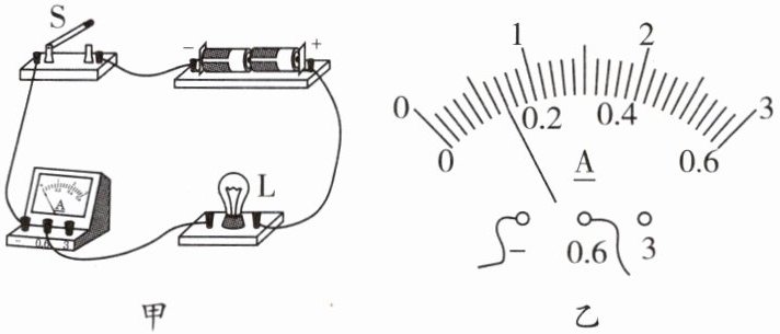 3. 如图甲所示,小华使用电流表来测通过小灯泡的电流。