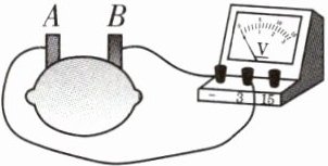 3. 在水果中平行插入两片不同金属制成的极板,就组成了一个水果电池,如图所示。物理兴趣小组的同学在课外实践活动中探究影响水果电池电压大小的因素,实验前,他们的部分实验猜想如下: