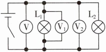 10. 如图所示电路中,闭合开关后,若电压表 $ V_1 $ 的示数为 $ 2.6 \, V $,则电压表 $ V_2 $ 的示数为
