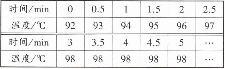 变化情况,当水温升到92℃时,每隔0.5min记录一次温度计的示数,直到水持续沸腾几分钟为止。部分数据记录如下表所示。请在图乙中大致画出温度—时间图像。分析数据可知,水的沸点是98