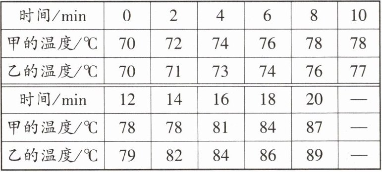 ℃。|时间/min|0|0.5|1|1.5|2|2.5|