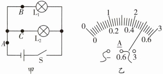 (2) 小华在某次实验时,测得C处电流为0.3 A,观察到A处电流表指针位置如图乙所示,则A处电流大小为