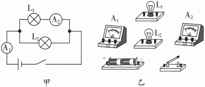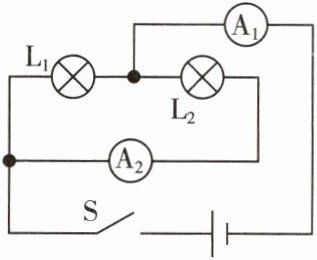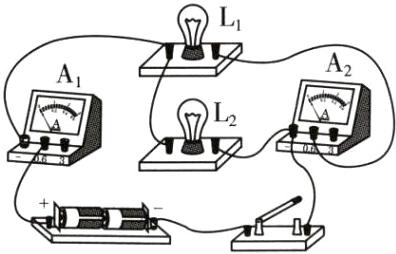 6. 如图所示,通过L₁的电流和通过L₂的电流之比是2:1,则电流表A₁和电流表A₂的示数之比是(