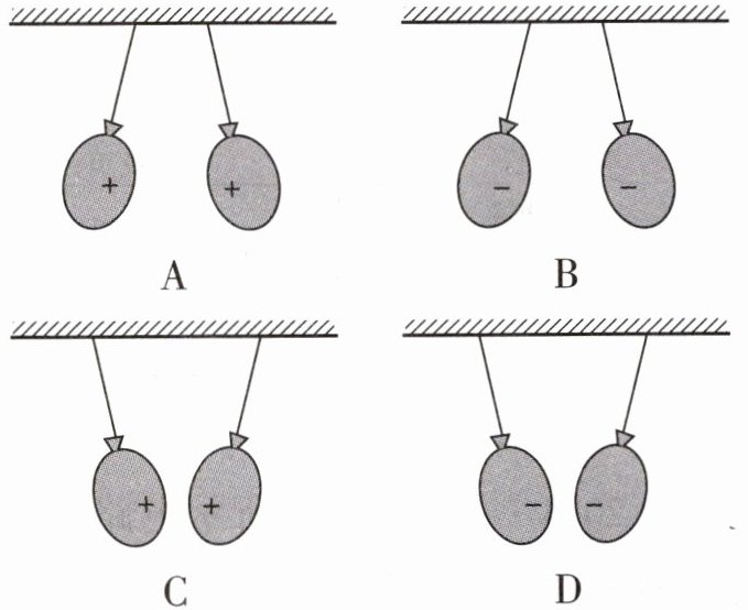 4. (2025·河南) 用干燥的毛皮分别摩擦两个由橡胶制成的气球,使两个气球均带电。将两气球靠近时,下图中能正确反映两气球所带电荷的种类和相互作用情况的是(