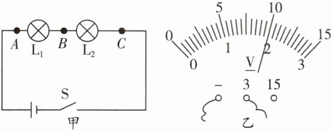 15. 小明用如图甲所示的电路探究串联电路的电压特点。