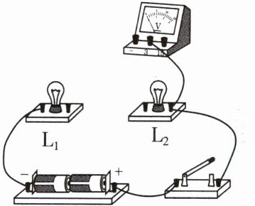 11. (2024·贵州) 如图所示是未完成连接的实物电路,请在图中用笔画线代替导线按要求完成电路连接。要求:两灯串联,电压表测量小灯泡L₂两端电压,导线不能交叉。