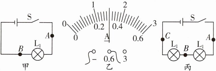 (3) 排除故障后,用电流表测出A点电流,示数如图乙所示,则I_A=