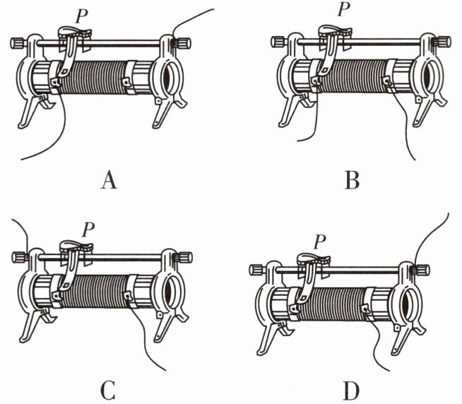 11. 当将滑动变阻器的滑片$P$向右移动时,如图所示的连接方法可使滑动变阻器连入电路部分的电阻增大的是 (