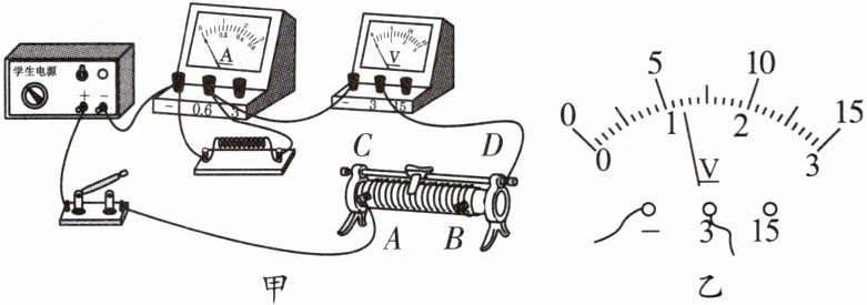 (3)排除故障后,将的定值电阻接入电路,闭合开关,应调节滑动变阻器的滑片,使电压表示数为。当滑片在某一位置时,电压表的示数如图乙所示,此时电压表的示数为______V;为使电压表示数为,滑动变阻器滑片应向______(选填“左”或“右”)端移动。