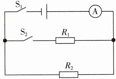 12. 如图所示的电路中,电源电压恒为$30V$,电阻$R_{1}为15Ω$。同时闭合开关$S_{1}$、$S_{2}$,电流表的示数为$2.5A$。求: