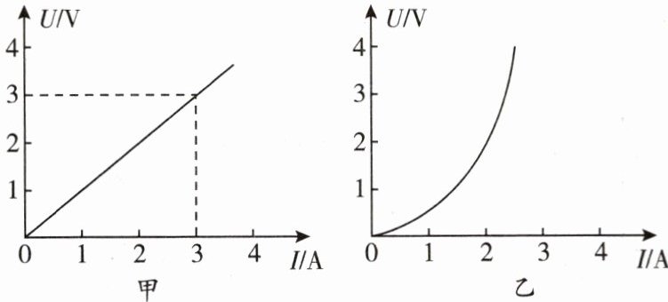 B.由图甲可知,电阻与其两端的电压成正比,与导体中的电流成反比