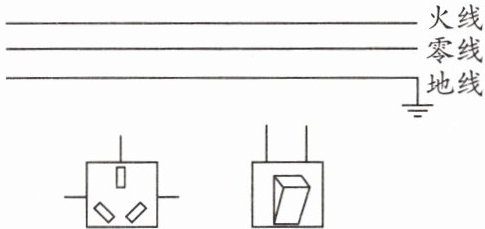 9. 如图所示是厨房里用开关控制的三孔插座,请用笔画线代替导线将其接入电路中。