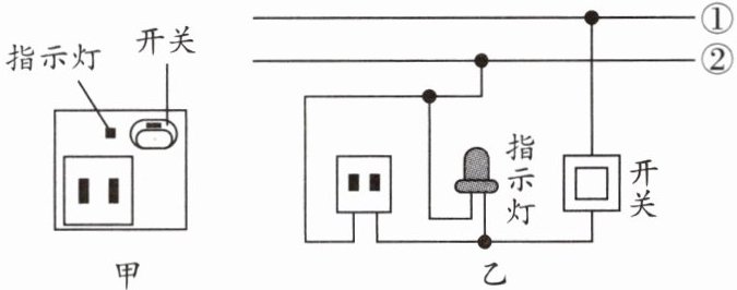 2. 图甲是小明家墙上的插座面板,图乙是其内部线路的正确连接情况。当闭合开关后,下列分析正确的是(