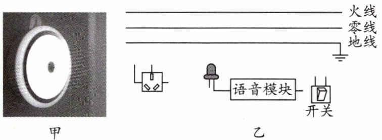 6. 如图甲所示是一款智能语音控制小夜灯,且带有插座,小夜灯自带语音模块;小夜灯和三孔插座由开关控制,并且都可以独立工作。请在乙图中连接电路。