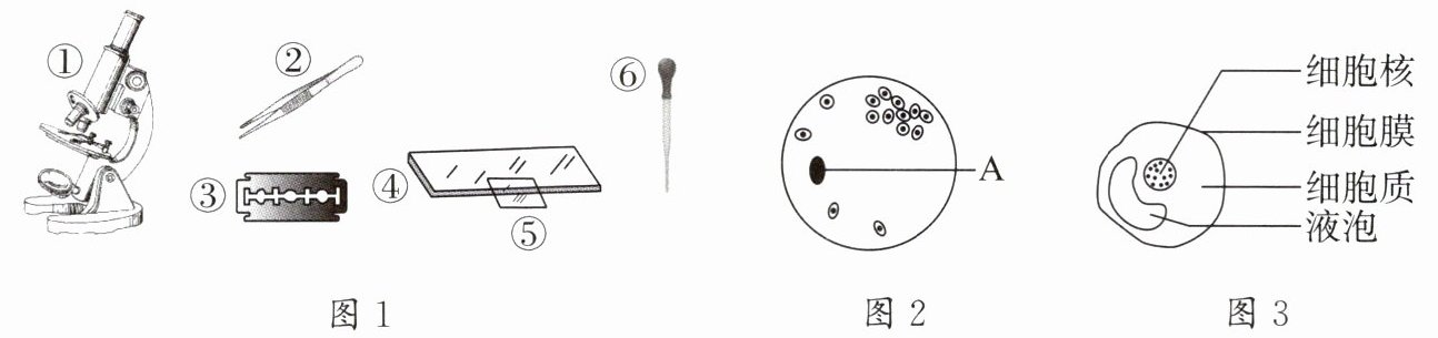 。(3)用目镜为10×、物镜为10×的显微镜观察人的口腔上皮细胞临时装片,显微镜下的视野如图2所示,此时显微镜的放大倍数是