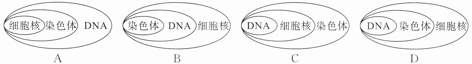 7. 下图表示细胞核、染色体、DNA 三者之间的关系,正确的是(