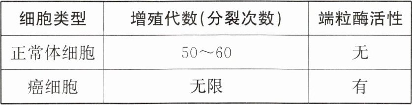 。(2)端粒酶是与染色体末端结构相关的一种细胞组分,下表明细胞癌变可能与端粒酶的活性有关。