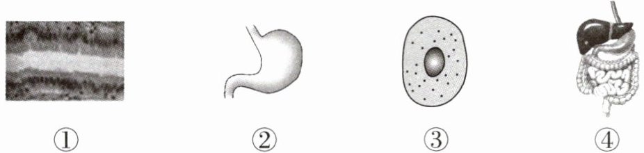 (2)题图中的④表示细胞分化,细胞分化使细胞的形态、结构和功能发生变化,形成了肌肉组织、上皮组织、神经组织和结缔组织四种基本组织。不同的组织按照一定的次序组合在一起构成的行使一定功能的结构,叫作器官。