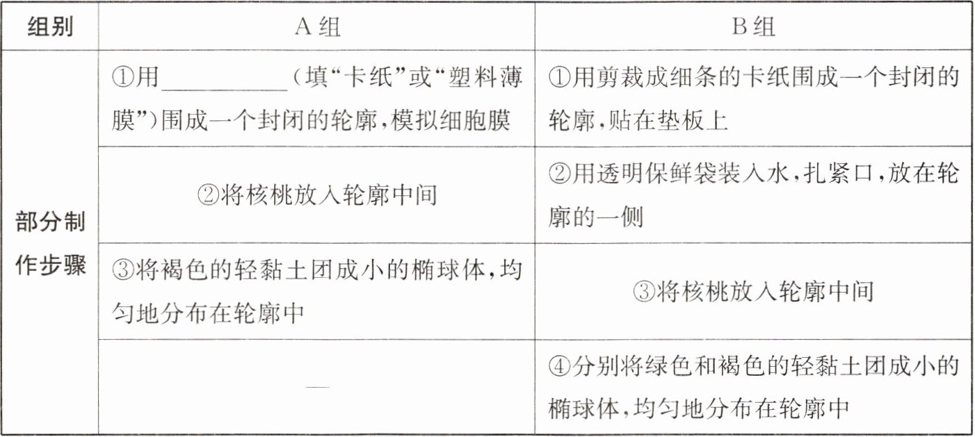 (1)由制作过程判断,制作植物细胞模型的小组是____(填“A 组”或“B 组”)。
