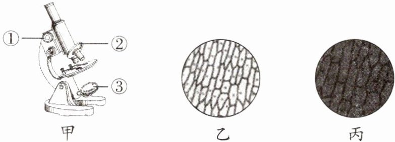 C.从图乙到图丙,可以通过转动图甲中的②更换物镜来实现