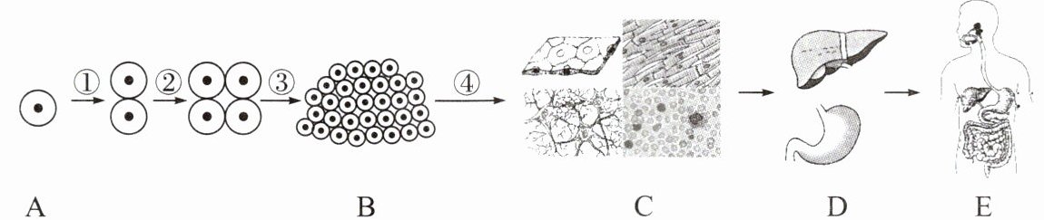 (1)整个人体都是由 A 细胞发育而成的,A 细胞是