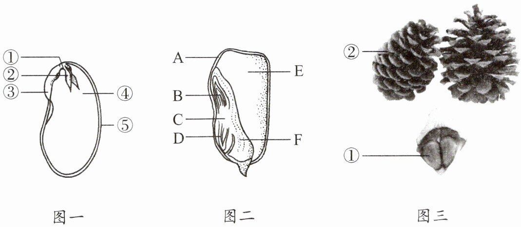 (5)观察松球果,如图三所示,松球果呈塔形,成熟后种鳞开裂,从外面可以看到其内含有[