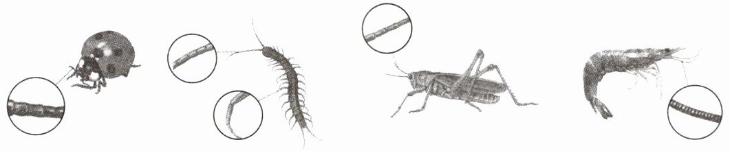 )A.身体都呈两侧对称,分为头部、胸部、腹部三部分